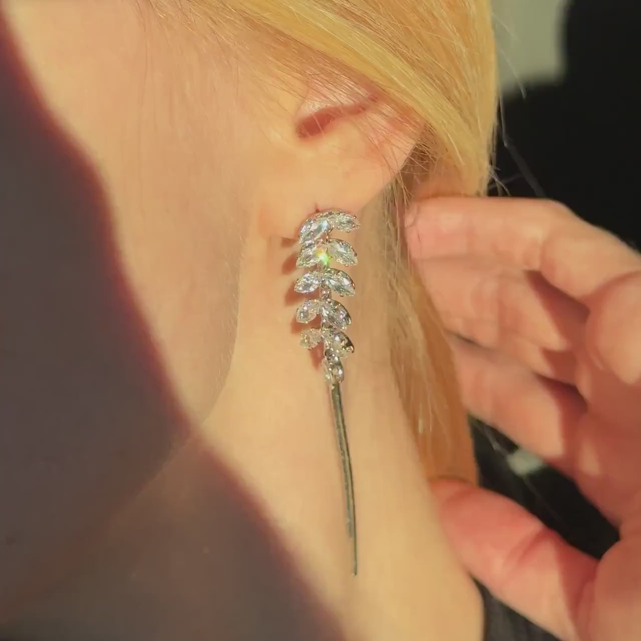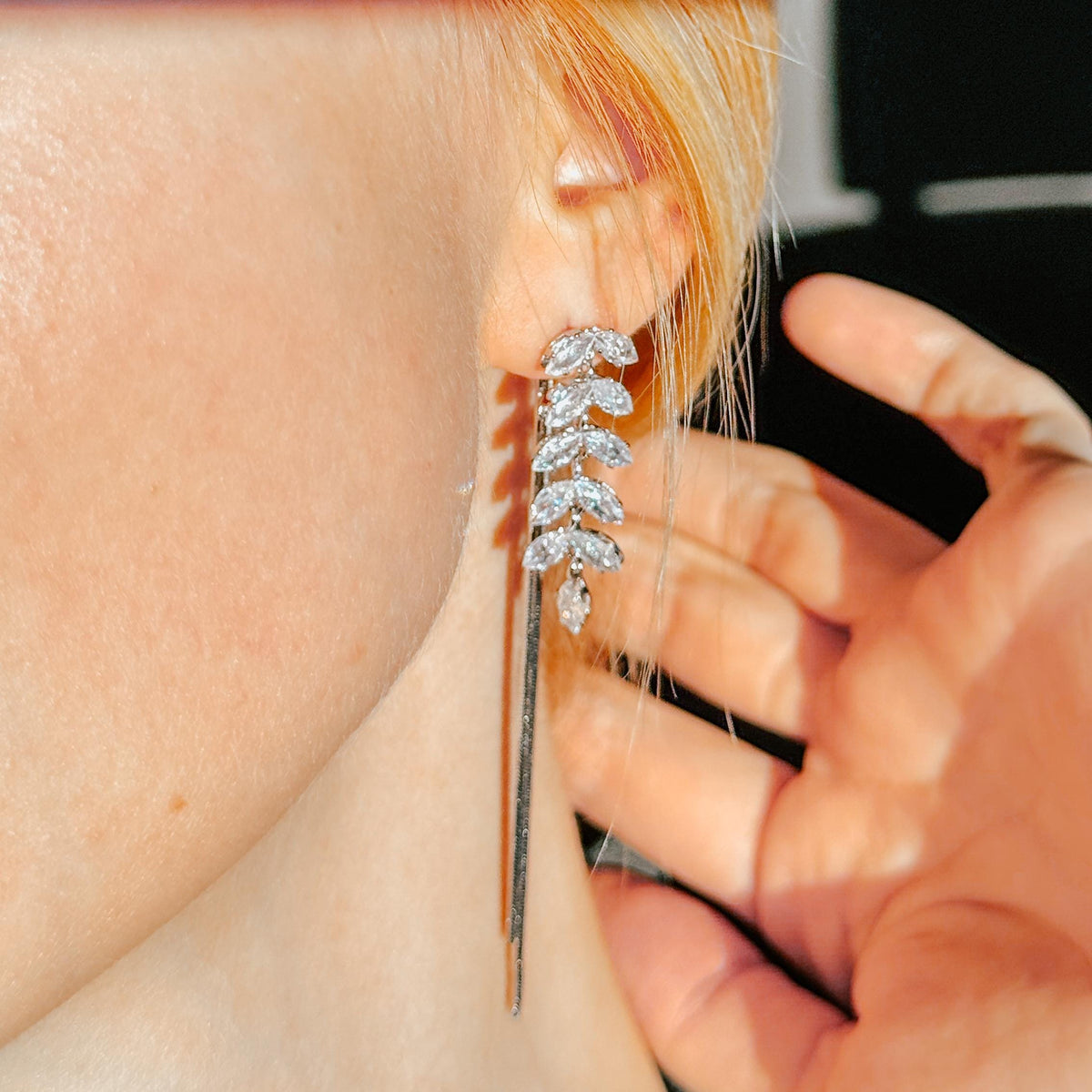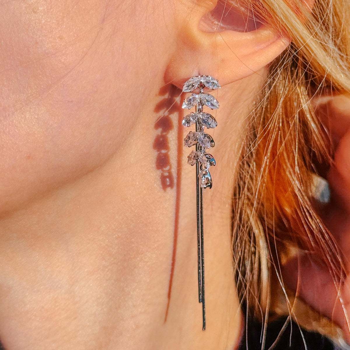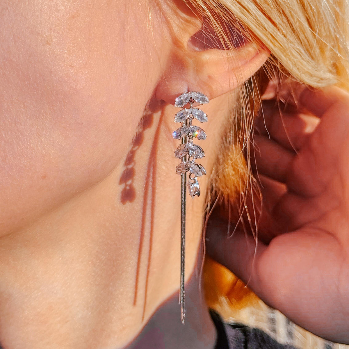 Gold Dangle Earrings Diamond Earrings Long Drop Earrings Elegant Earrings Birthday Gift Anniversary Gift Minimalist Gift for Her - Silver