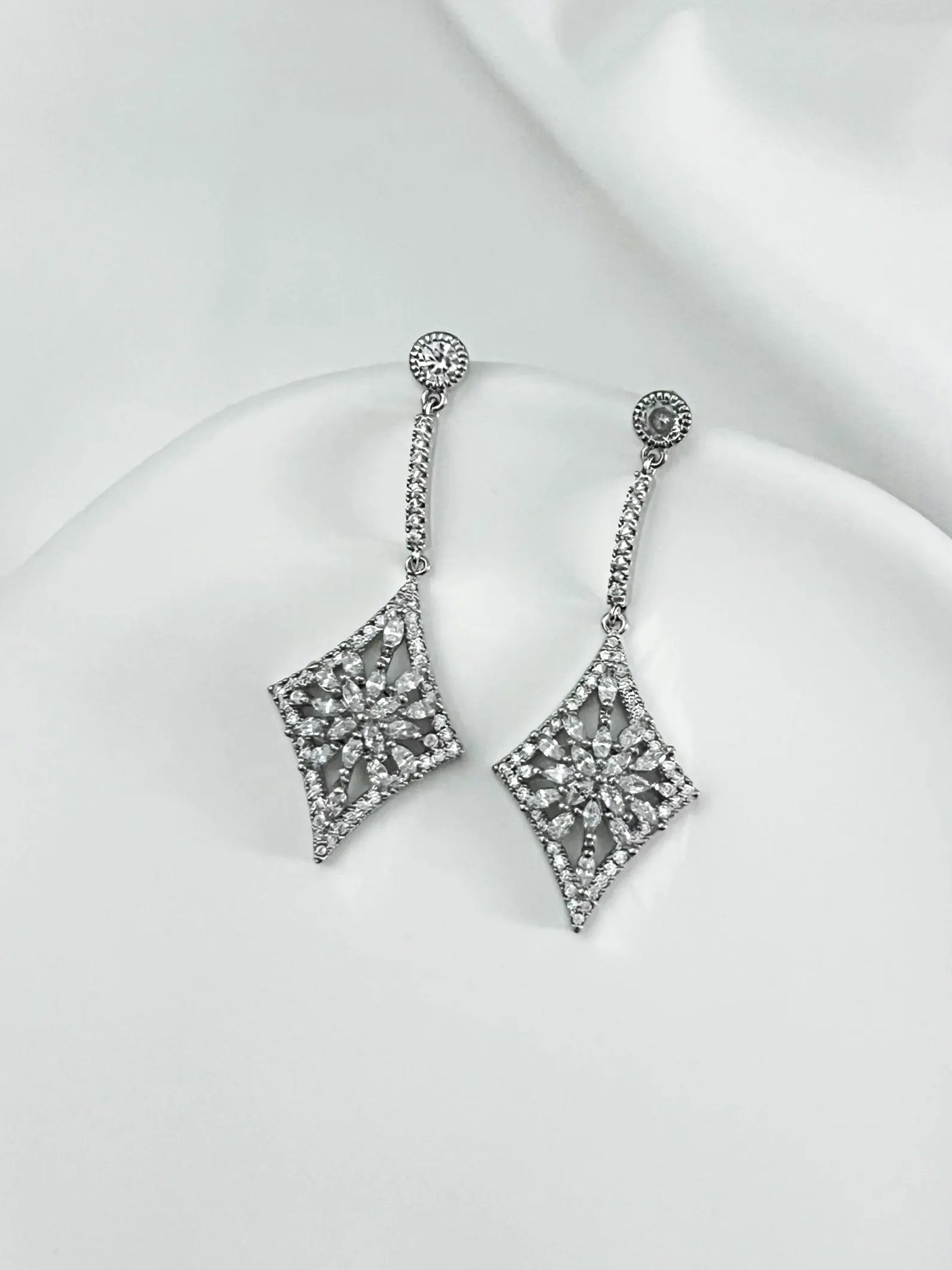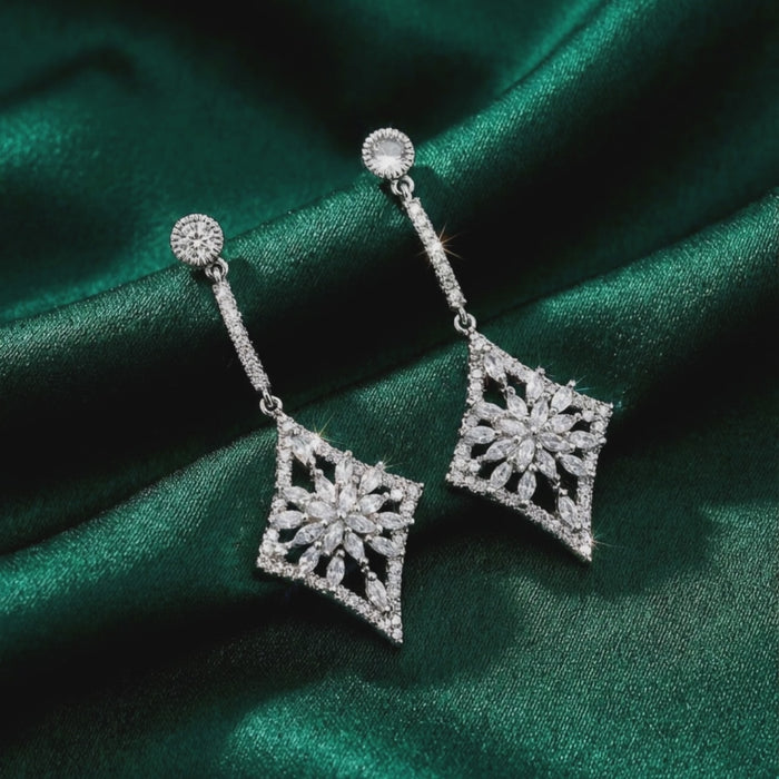 Diamond Dangle Earrings - Silver