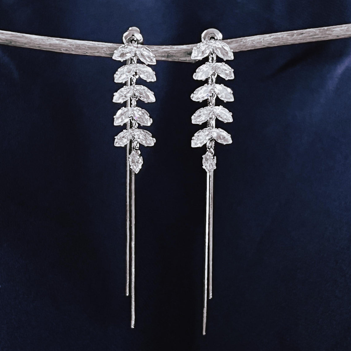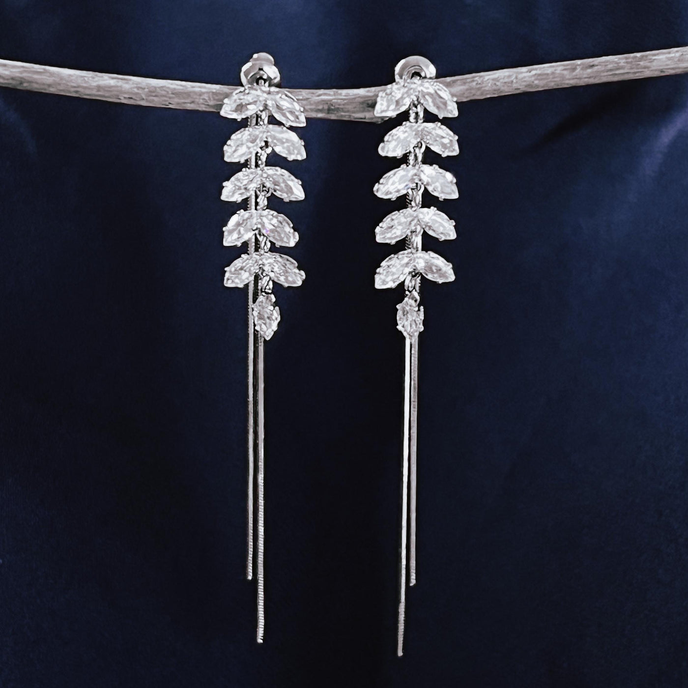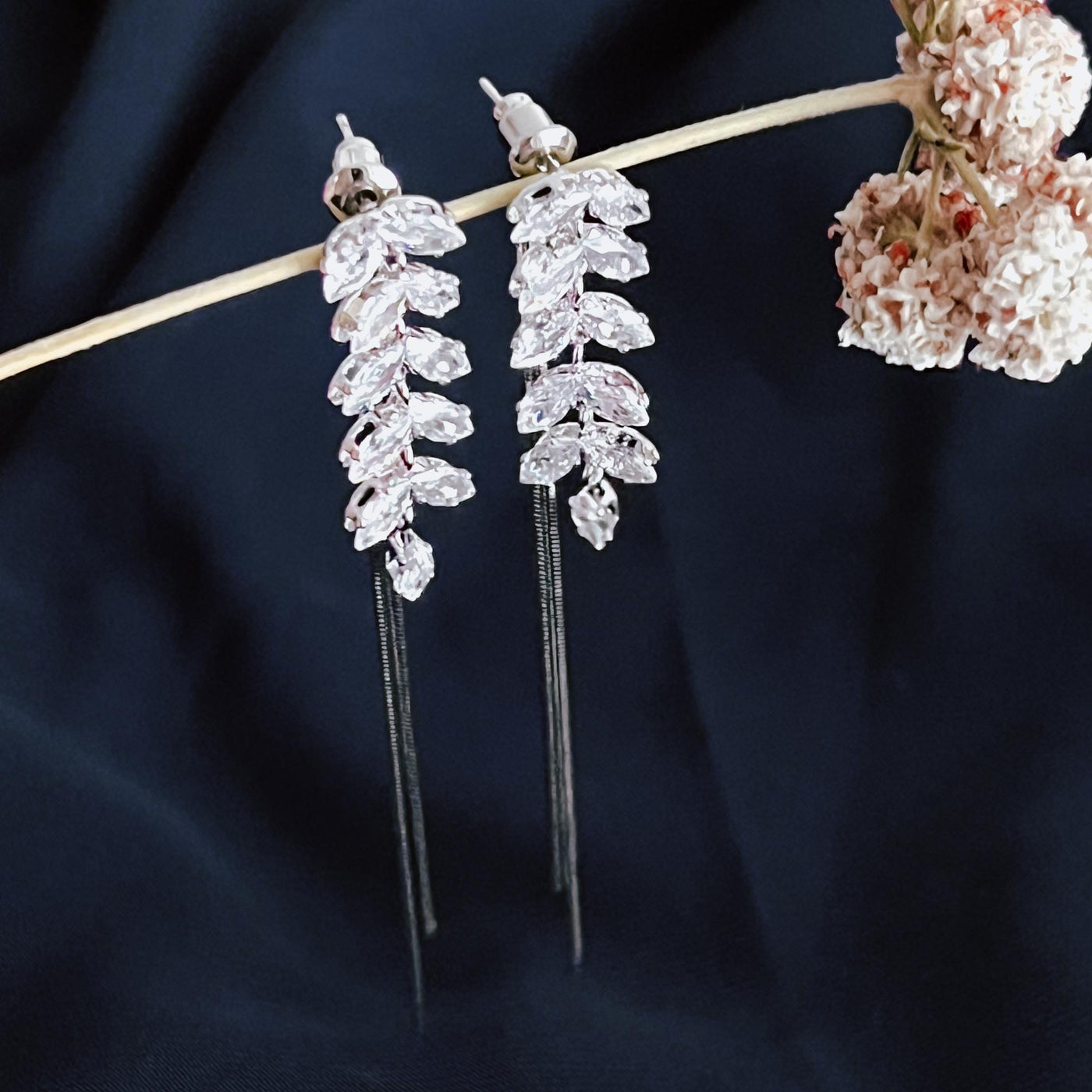 Silver Crystal Leaf Drop Earrings Bridal Dangle Earrings Wedding Jewelry for Bride Silver Bridesmaid Earrings Elegant Gift for Her - Silver