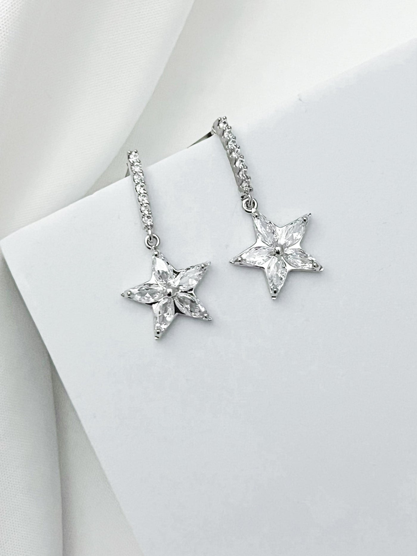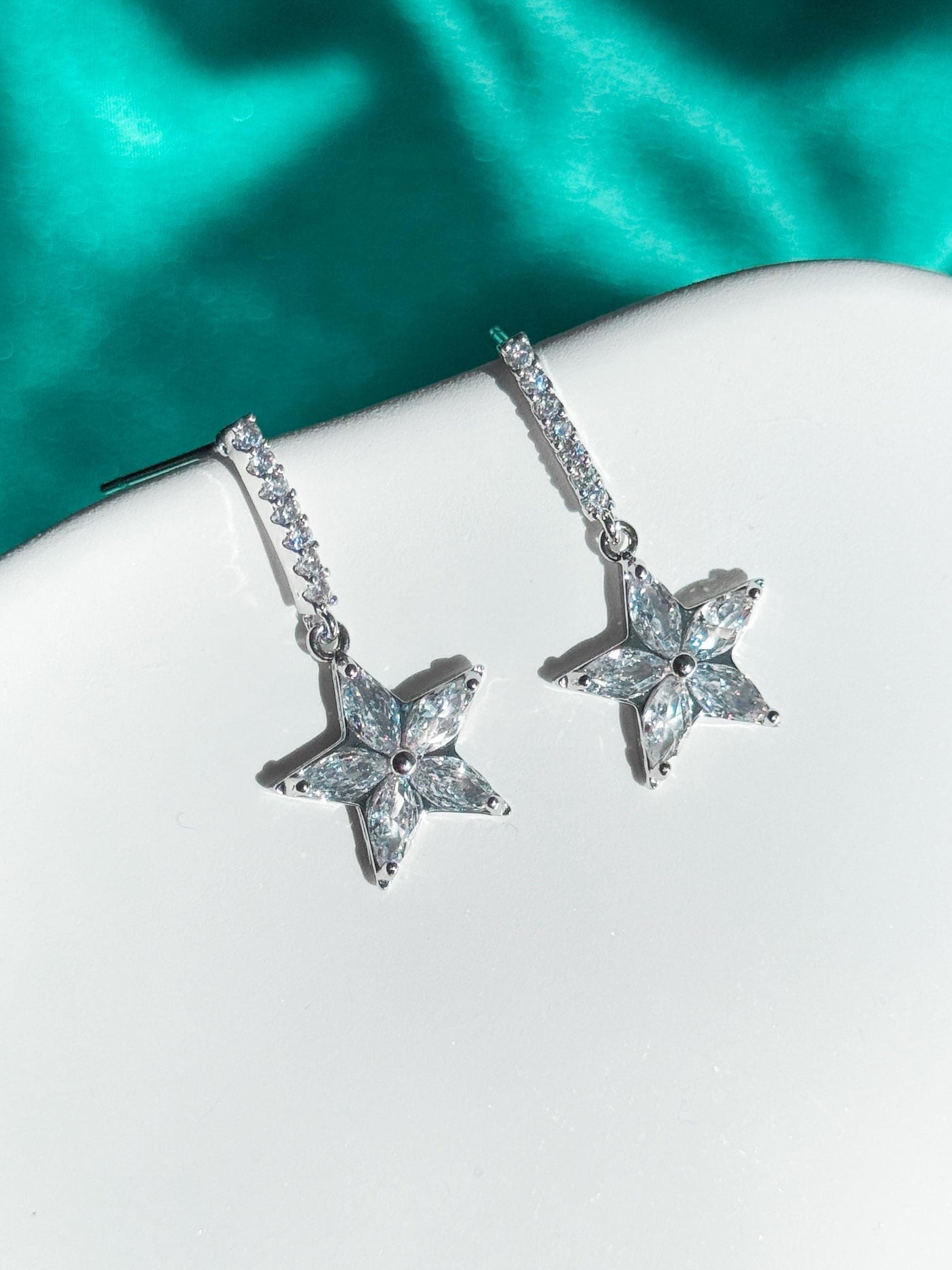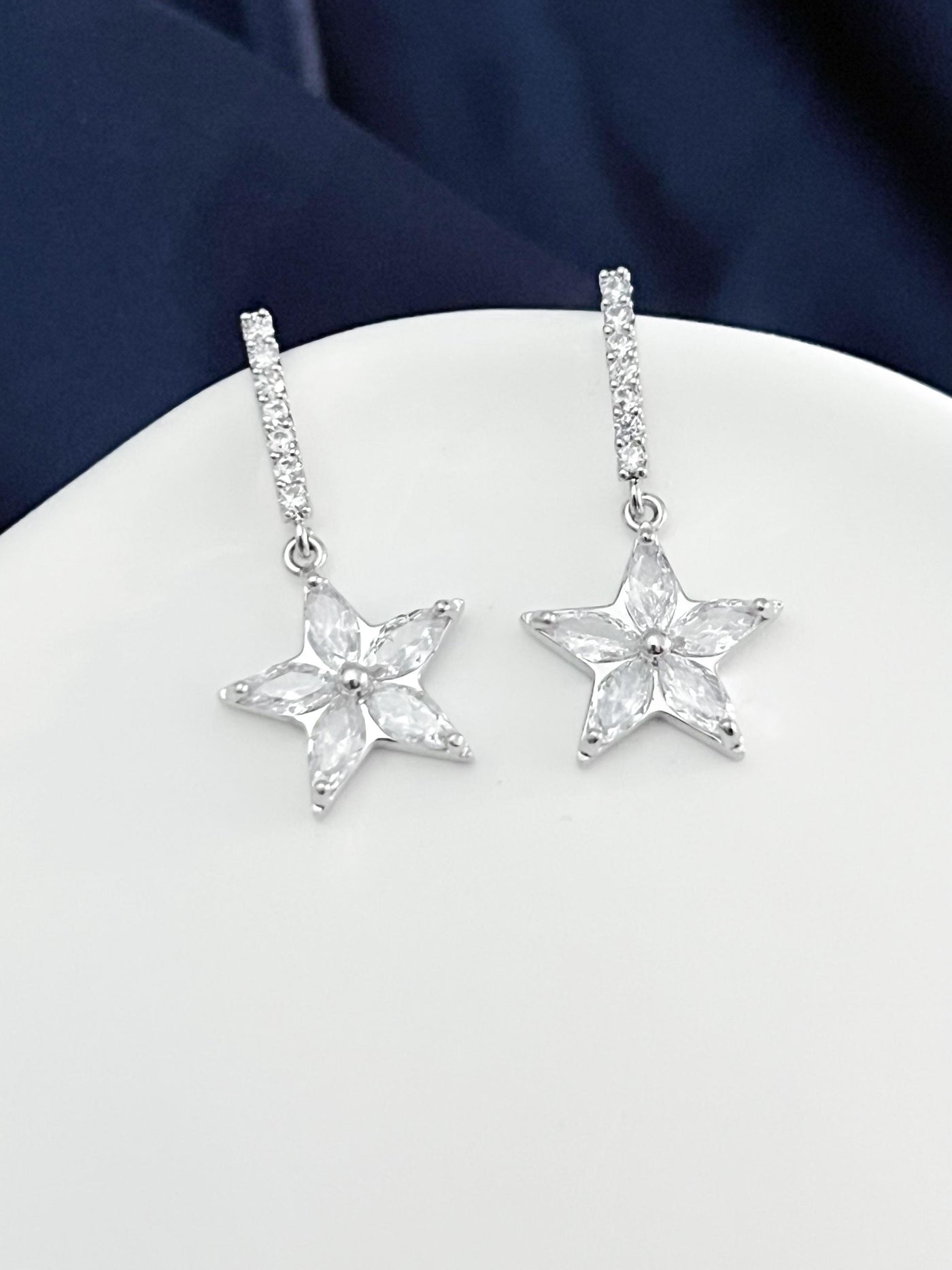 Silver Star Earrings, Stainless Steel Earrings with Crystal Star Charm, Dainty Y2K Celestial Jewelry, Cute Gift for Her, Gift For Mom - Silver