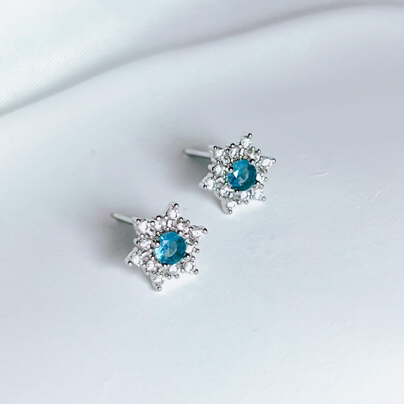 Snowflake Stud Earrings Crystal Blue Nature-Inspired Earrings Winter Jewelry Snow Jewelry Christmas and Holiday Jewelry Unique Gift for Her - Silver
