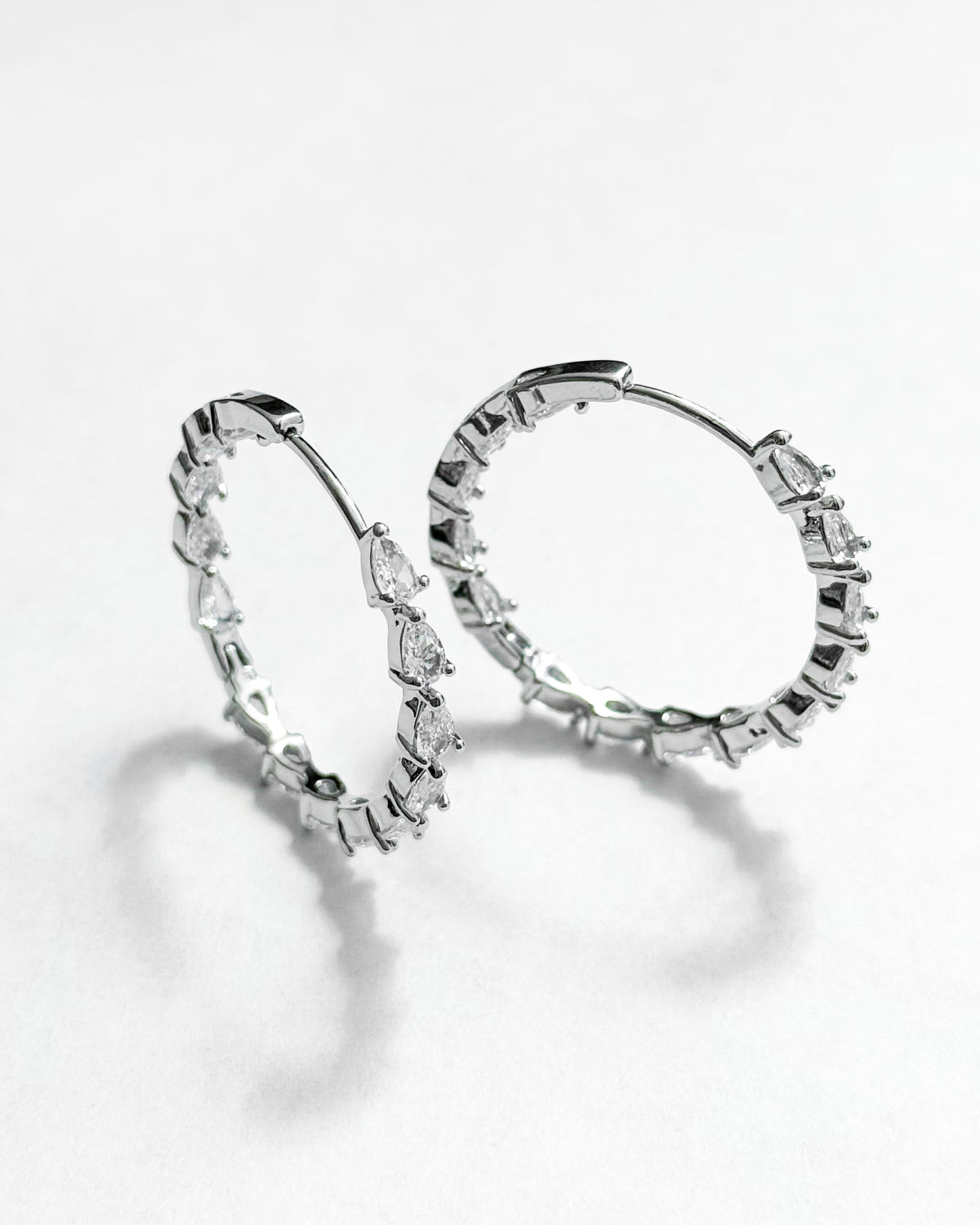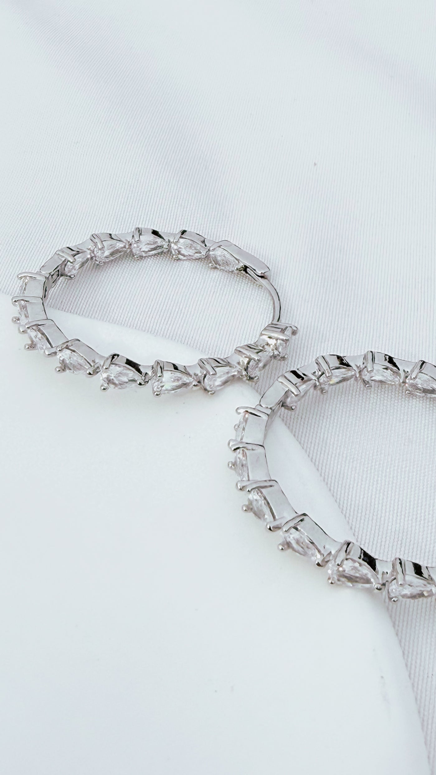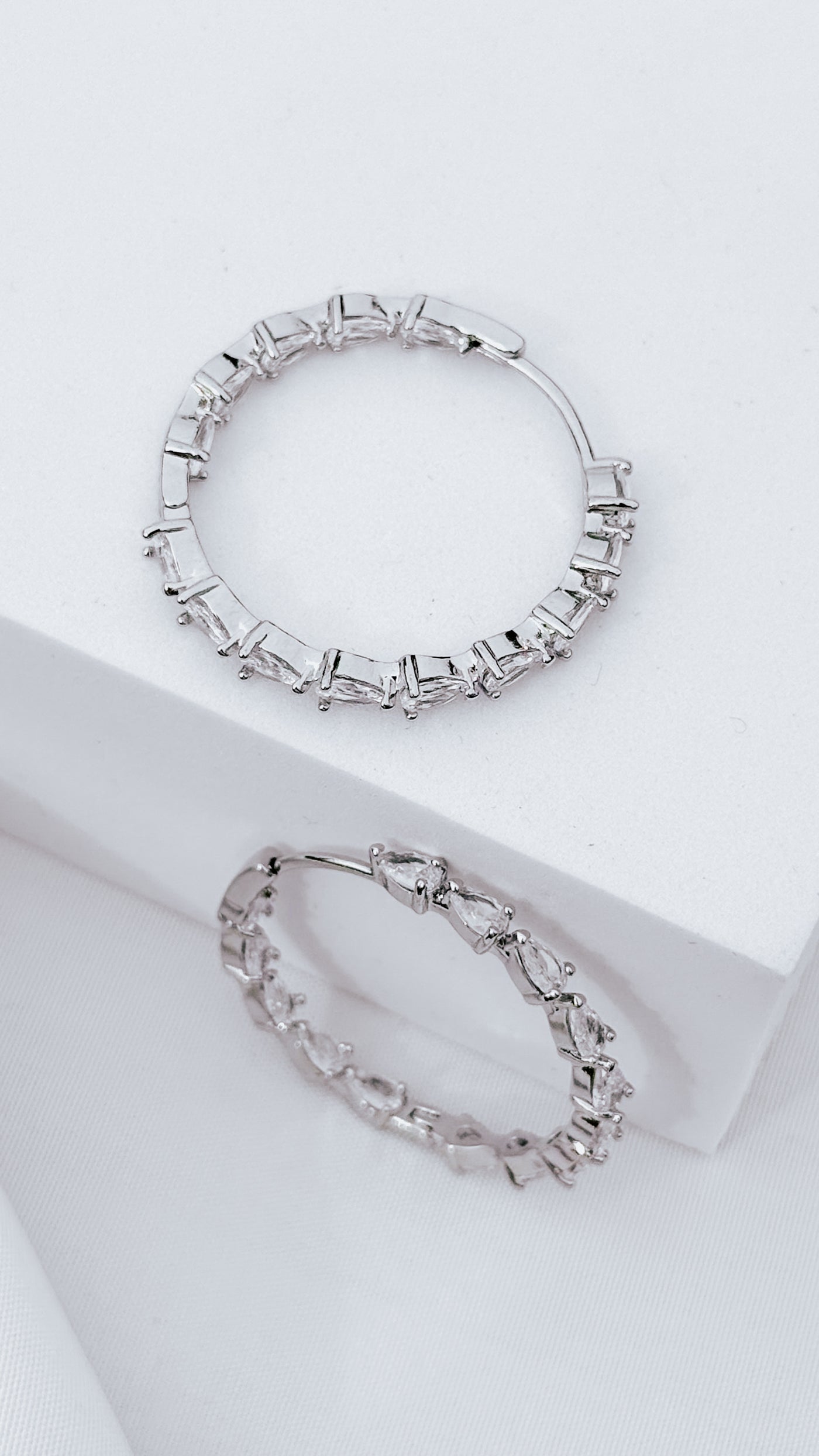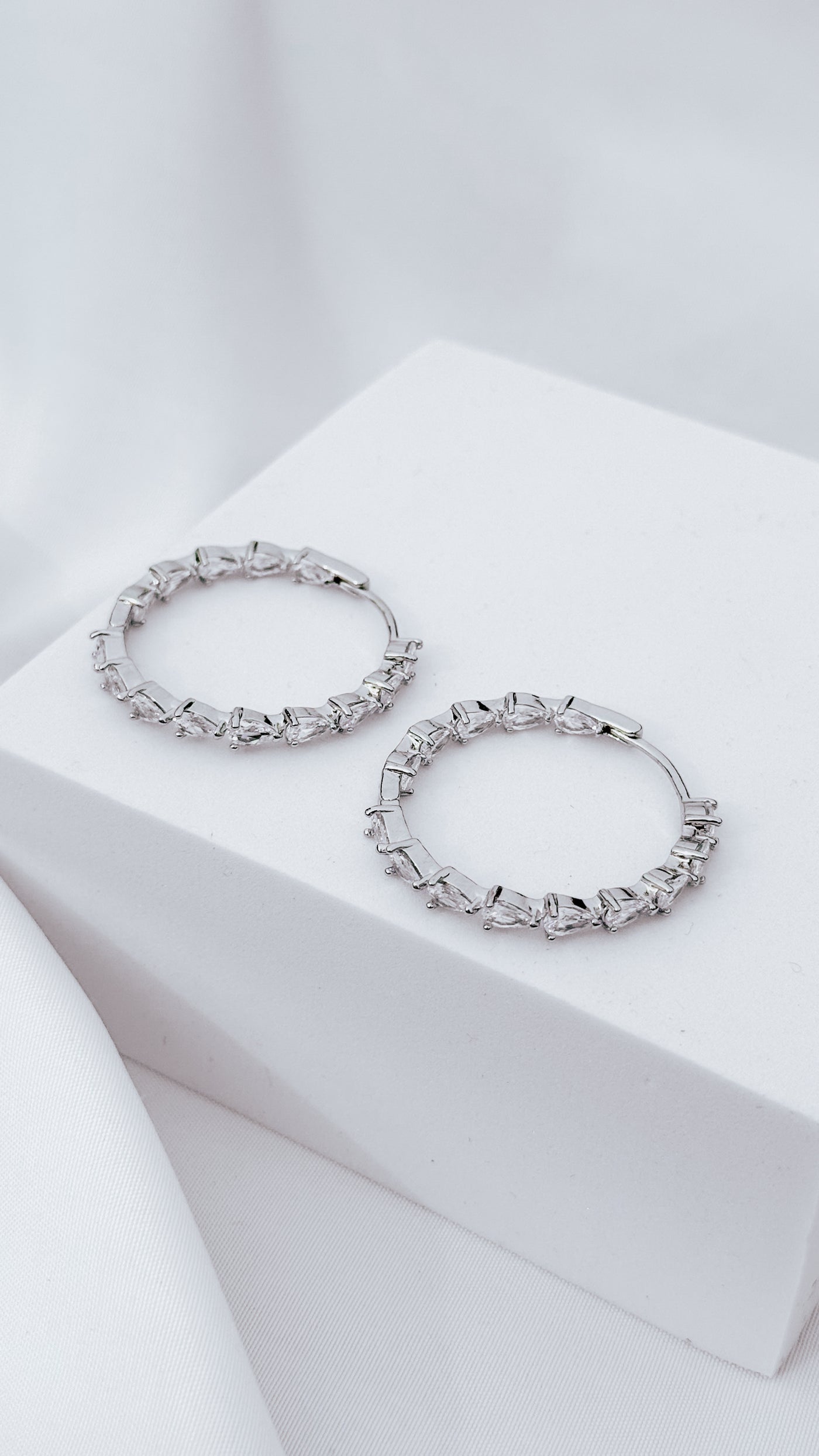 30mm Round Sparcle Crystals Hoop Earrings - Silver