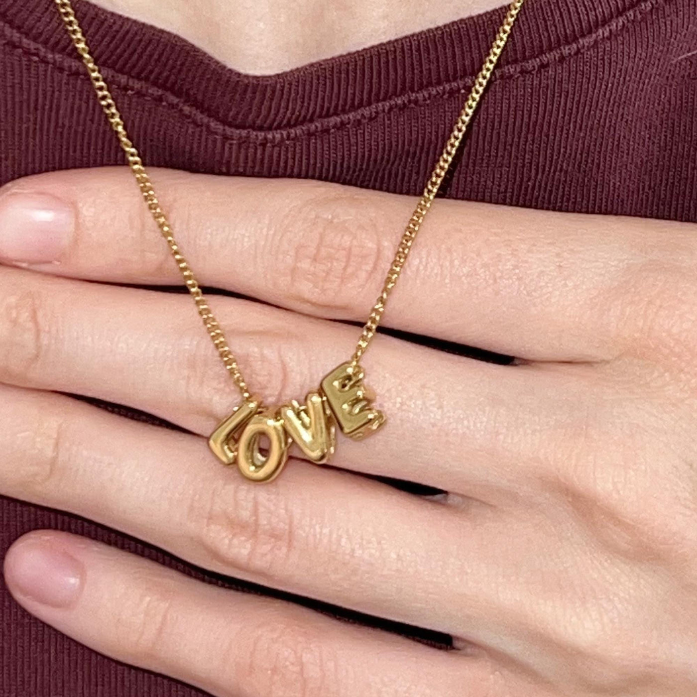 3D Bubble Letter Necklace Love, Valentine's Day Gift, Bubble Letter Necklace, Anniversary Gifts, Bubble Initial Charm 3D Necklace For Her