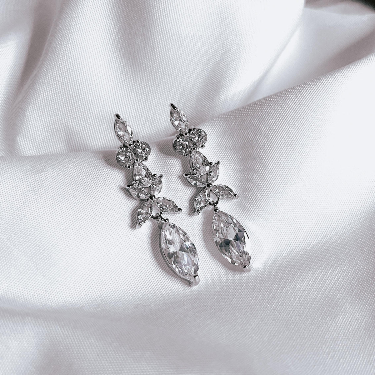 Crystal Drop Earrings Bridal Wedding Jewelry for Bride Silver Dangle Earrings Bridesmaid Earrings Dainty Bridal Gift Elegant Gift for Her