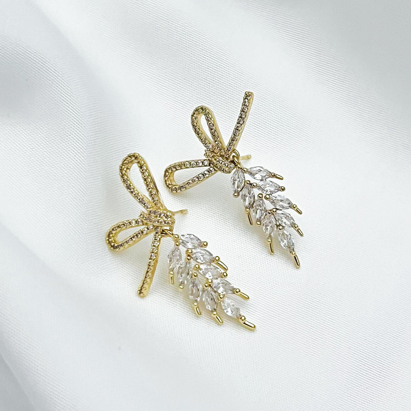 Gold Wheat Stud Earrings Diamond Wheat Drop Earrings Cubic Zirconia Leaf Drop Earrings Wedding Jewelry Bridesmaid Earrings Gift for Her