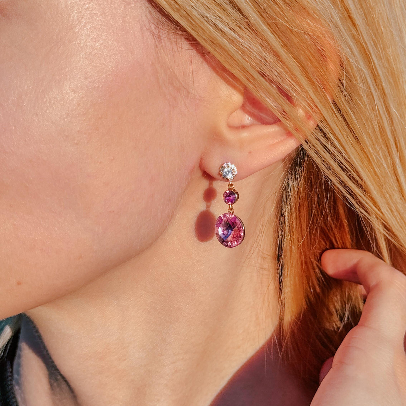 Light Pink Crystal Earrings Fuchsia Dangle Earrings Sparkling Earrings for Party Pink Drop Earrings Art Deco Earrings Vintage Earrings