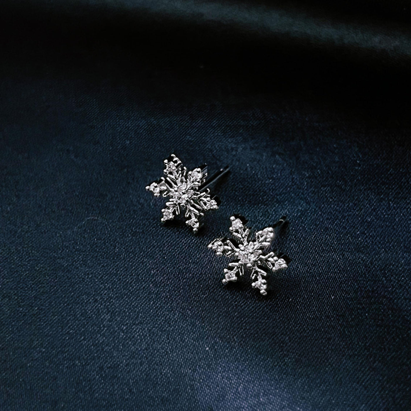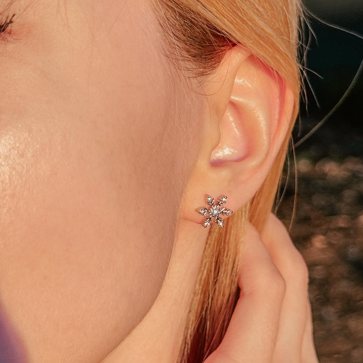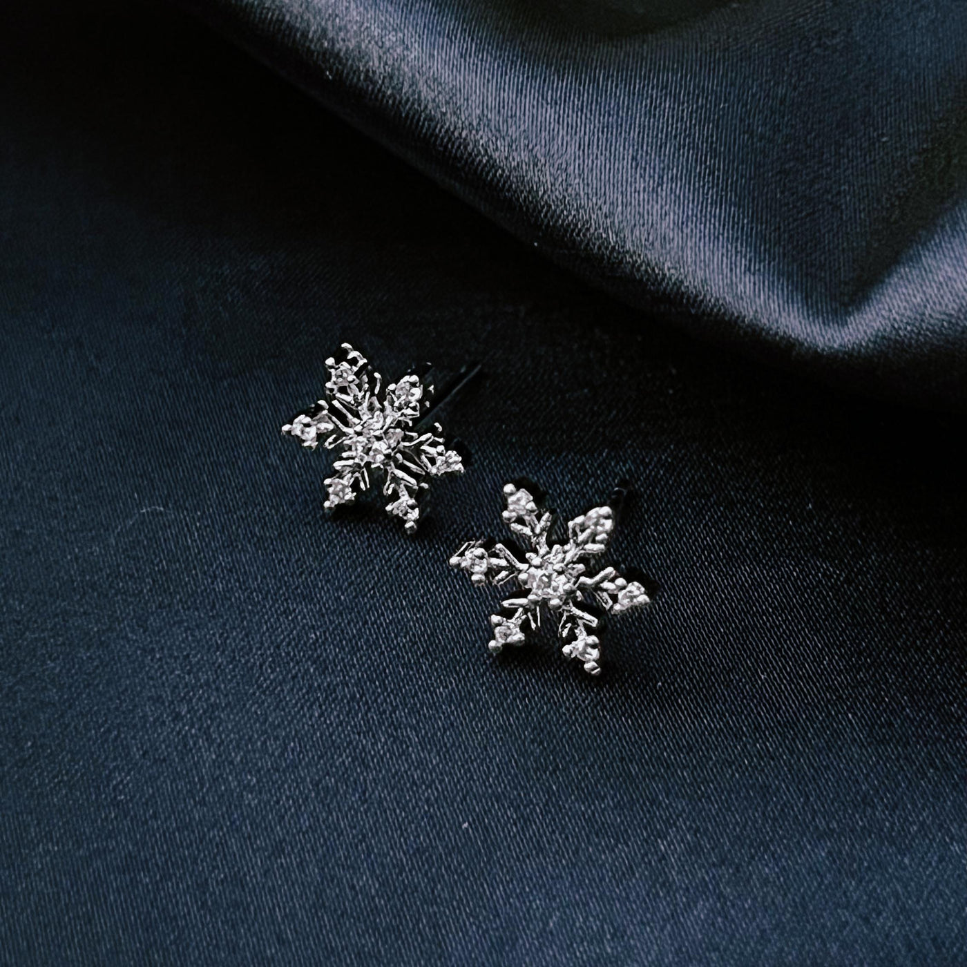 Snowflake Earrings Sterling Silver CZ Studs Dainty Winter Jewelry Holiday Earrings Wedding Bridesmaid Gift Everyday Elegant Earrings